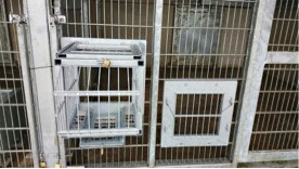 A multi-purpose sleeve was installed in the indoor den area of the polar bear house. It could be placed in the head or foot position and can be used for ear/eye care or head x-rays. It can be moved to the foot position and used for foot x-rays.