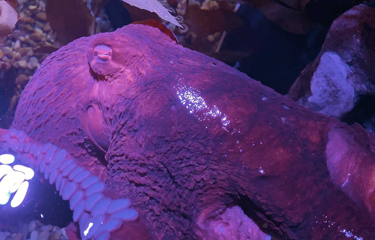 Come con tutti gli animali, prima di iniziare qualsiasi addestramento o arricchimento dedico del tempo a “conoscere” l'individuo, il che mi permette di fare approssimazioni sul suo comportamento. Molti animali richiedono un approccio personalizzato all'addestramento, perché proprio come noi, ogni individuo è unico. Più impari su di loro, più puoi prepararli al successo e penso che sia importante tenerlo sempre a mente. Quando lavori con un animale che non è vocale e silenzioso, devi prestare particolare attenzione a come comunicano con te e il modo in cui lo fanno i polpi è semplicemente magnifico. Attraverso minuscole cellule che cambiano colore (cromatofori) e fibre che flettono i muscoli (papille), possono comunicare complessità emotive attraverso i movimenti, il cambiamento di colore e la struttura della pelle. E prendersi cura di loro apre una porta a un "foglio di riferimento" nel loro processo cognitivo, semplicemente osservando i comportamenti di colore/trama di quell'individuo.