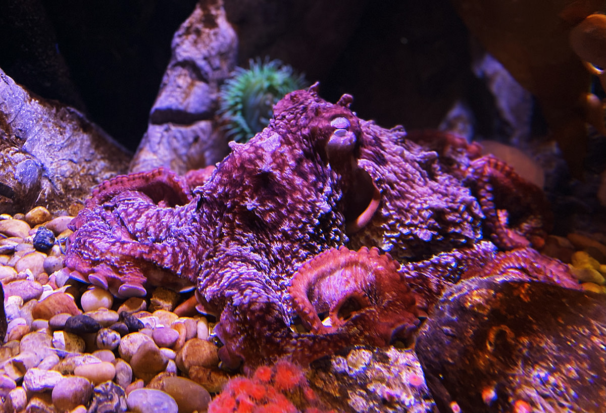 Sotto la cura dell'uomo, gli acquari pubblici tendono a indirizzare l'arricchimento e l'addestramento degli animali verso due argomenti: incoraggiare i comportamenti naturali che un animale mostrerebbe per tutta la vita e addestrare attraverso il condizionamento operante per ridurre lo stress durante le necessarie procedure medico/interventistiche. Con i polpi, uno dei modi migliori per fornire un buon risultato in un esame è condizionarli all'"addestramento del cestino". In parole povere, chiedere al polpo di entrare volontariamente in uno spazio chiuso rinforzando l'attività con tutte le cose che i polpi amano di più: giocattoli, cibo e divertimento! In questo modo, se mai avessero bisogno di essere trasportati, esaminati dal personale medico o raccogliere datti morfo metrici per monitorare la loro crescita e dieta, il processo diventa esponenzialmente meno spaventoso (perché cercare di forzare un polpo a fare qualsiasi cosa è quasi impossibile... sono molto forti e intelligenti).