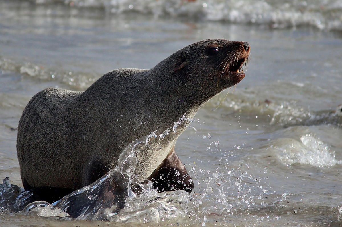 Enquanto os dois leões-marinhos estão em sessão, o animal dominante começa a deslocar o animal subordinado rugindo e movendo-se em sua direção. O animal subordinado foge, enquanto o animal dominante fica e continua com a exibição.